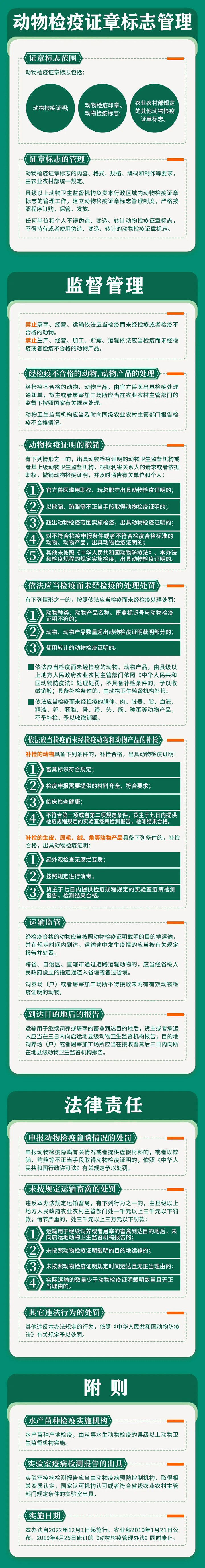 《動物檢疫管理辦法》已于2022年8月22日經(jīng)農(nóng)業(yè)農(nóng)村部第9次常務(wù)會議審議通過,并自2022年12月1日起正式施行?!掇k法》在檢疫制度設(shè)計、檢疫人員和證章標(biāo)志管理、監(jiān)督執(zhí)法等方面做了哪些調(diào)整?一張圖帶你讀懂↓↓↓