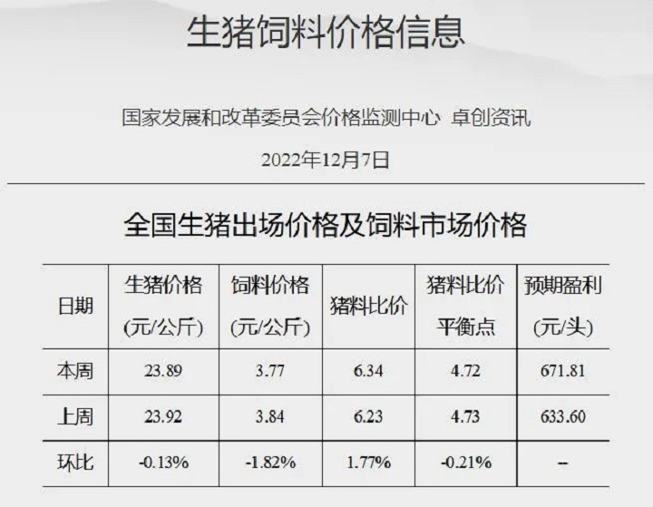 國家發(fā)改委:預(yù)計短期豬價或以震蕩盤整為主 毛雞價格或以穩(wěn)為主 蛋雞盈利變化不大