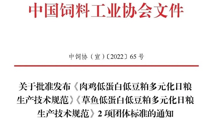 飼料工業(yè)協(xié)會批準發(fā)布《肉雞、草魚低蛋白低豆粕多元化日糧生產(chǎn)技術(shù)規(guī)范》兩項團體標準